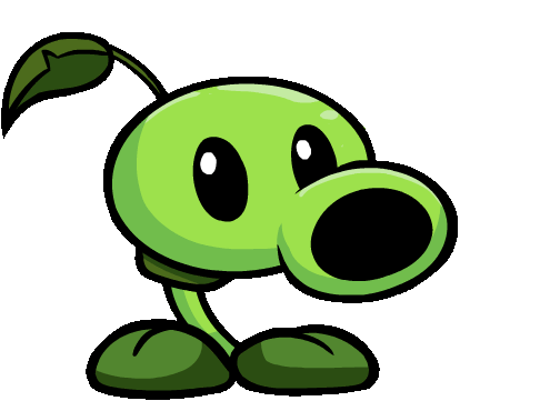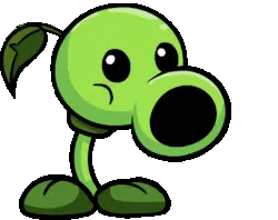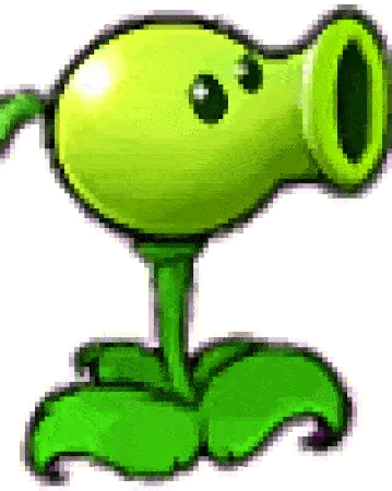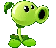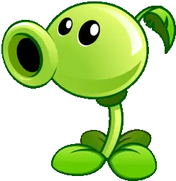 The iconic green Peashooter from Plants vs. Zombies, ready to defend the garden with its pea-shooting action.