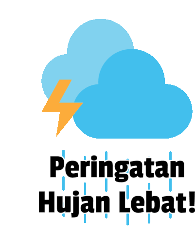 Animated sticker showing a heavy rain warning with clouds and falling rain, related to Laporgub Jateng and Ganjar Pranowo.