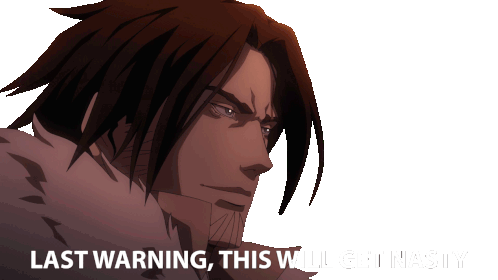 Trevor Belmont issues a stern 'Last Warning, This Will Get Nasty' in this animated sticker, ready for a confrontation.