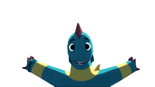 Boris The Dragon from My Father's Dragon animated series, giggling and chuckling with a joyful expression. A happy Netflix character.