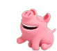 a pink pig is smiling and sitting down on a white background .