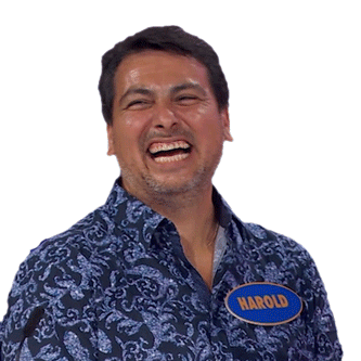 a man with a name tag that says harold is smiling