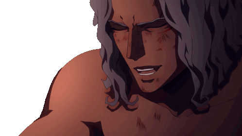 Hector from Castlevania, voiced by Theo James, chuckles with a slight smile.