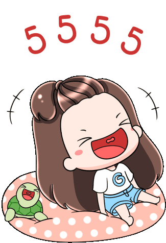 A cartoon girl laughs hilariously, rolling on a pillow next to a giggling turtle, with '5555' text.