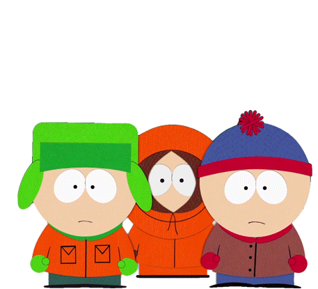 Stan Marsh, Kyle Broflovski, and Kenny McCormick from South Park share a laugh in this animated sticker.