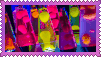 A vibrant animated sticker featuring multiple lava lamps with flowing colorful liquids, framed by a decorative purple border.