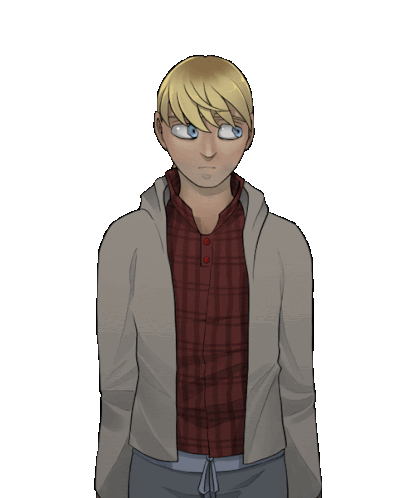 a drawing of a man wearing a plaid shirt and a gray jacket