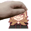 a pixel art of a person 's face being touched by a cat .