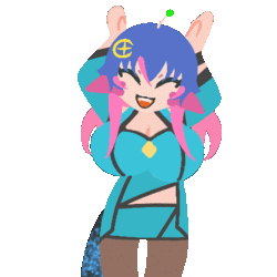 a cartoon drawing of a girl with blue hair