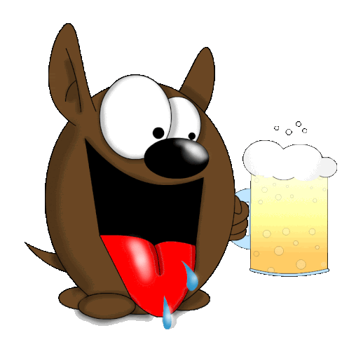 a cartoon dog is holding a mug of beer with foam coming out of it