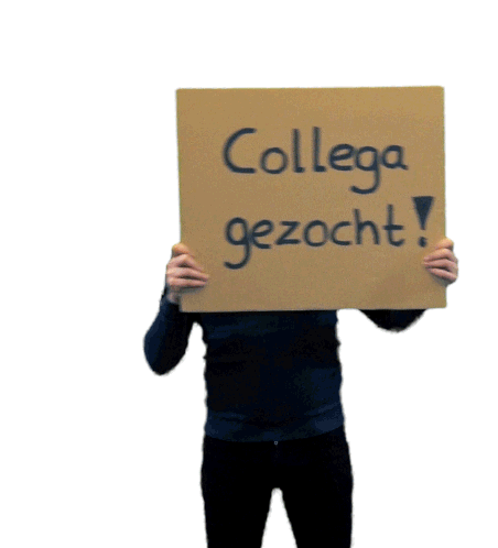 Leadrs Erhan smiles, holding a sign that reads 'Colleague wanted!', actively recruiting for Leadrs.