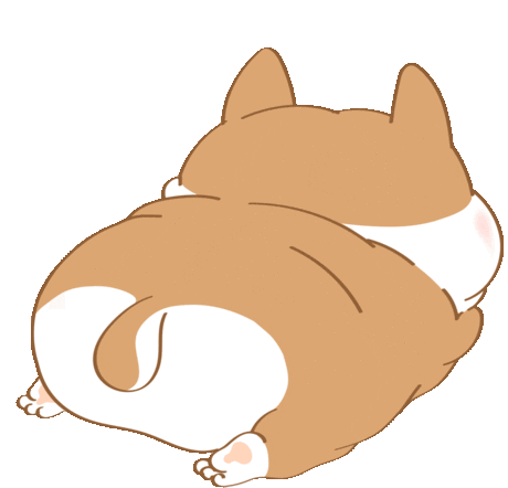 An adorable Ledroplet Corgi wiggles its fluffy butt while lying down, a cute and playful animated sticker.