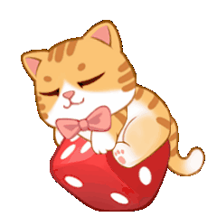 A cute orange tabby cat with a pink bow tie peacefully sleeps on a red dice, associated with Legend Of Phoenix Lop.