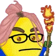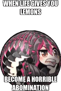 Lemons: A chibi boy with spiky hair looks startled as a chibi girl clings to his leg from behind.