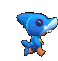 a pixel art drawing of a blue bird with a knife in its mouth .
