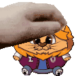 Leobolita, a cartoon lion in a purple jacket, is gently petted by a hand, conveying affection and comfort.