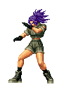 Leona Heidern from KOF LK in pixel art, striking a dynamic pose in her military uniform.