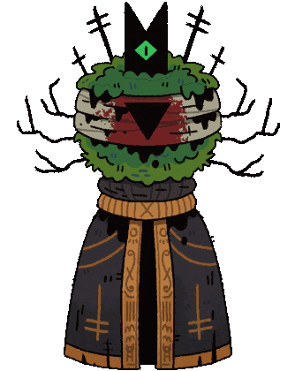 Leshy, the first Bishop of the Old Faith from Cult of the Lamb, blinks his eye in this animated sticker.