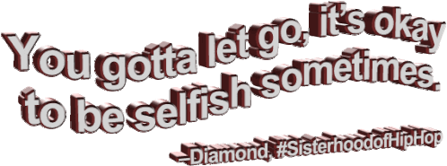 Animated text sticker encouraging self-care and letting go, featuring the quote "You gotta let go, it's okay to be selfish sometimes" attributed to Diamond.