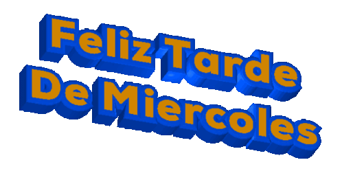 Animated 3D text sticker wishing 'Feliz Tarde De Miércoles' (Happy Wednesday Afternoon) in blue and orange.