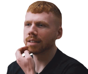 A man with red hair and a beard scratches his chin thoughtfully, conveying a moment of contemplation or consideration.