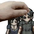 Levi from Fear & Hunger in a pixel art animated sticker. Features a hand interacting with Levi.