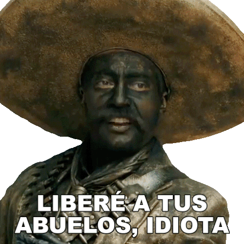 Emiliano Zapata, depicted with blackface and a sombrero, delivers the iconic line 'I freed your grandparents, idiot'.