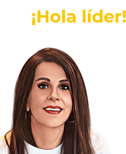 A friendly woman smiles and greets with '¡Hola líder!', representing MLNE and the 'Mujer Líder' concept.