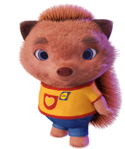 Cute Pufarici hedgehog from Lidl Romania holding a red flower, looking sweet and shy.