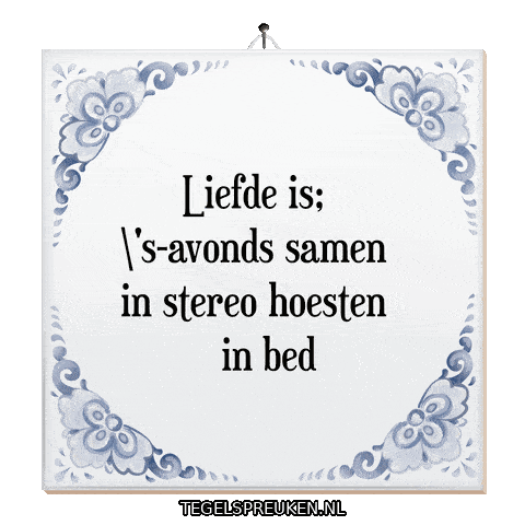 a blue and white tile that says liefde is 's-avonds samen in stereo hoesten in bed