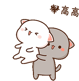 Two cute cartoon cats, one grey and one white, playfully lift each other up, expressing joy and affection.