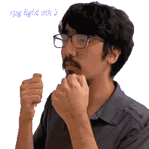 a man with glasses and a beard is making a funny face