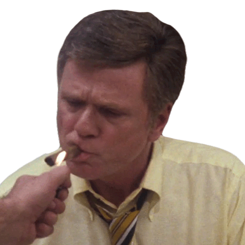Perry White, portrayed by Jackie Cooper, lights his cigar in a classic scene from Superman The Movie.