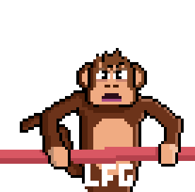 An animated pixel art monkey from Lil Chimps, looking surprised and shaking, with 'LFG' on its chest.