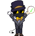 Lil Mandy, a cartoon character in a suit and top hat, holds a speech bubble with a green checkmark, indicating approval.