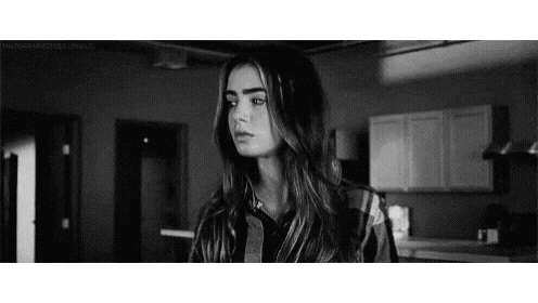 Lily Collins and Felix Mallard appear in a black and white scene, looking around and sitting with a group of young people.