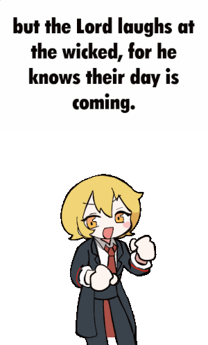 Don Quixote from Limbus Company dances cheerfully with a biblical quote overlay, showing a playful yet ominous mood.