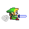 Animated pixel art sticker of Toon Link from The Legend of Zelda, running with his sword extended forward.