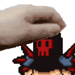 From Lisa RPG, a pixel art sticker by Dustin Armstrong featuring a hand gently petting a stylized skull, referencing Lisa the Joyful and Lisa the Painful.
