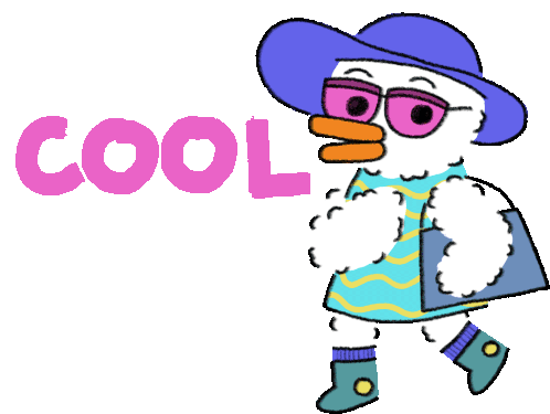 A cool duck character from Littlest Friends by Timothy Winchester, walking confidently with shades and a big hat.