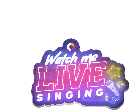 A vibrant neon sign encourages viewers to watch a live singing stream, featuring a microphone and musical notes.