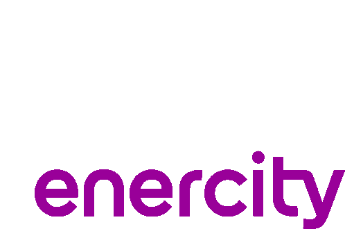 Animated logo for Enercity, featuring a dynamic color change from purple to a red and purple gradient.