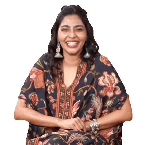 Aishwarya Lekshmi laughs heartily, showing a funny and hilarious reaction, perfect for expressing amusement.