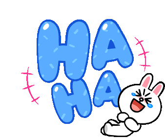 Cute white rabbit character laughing hysterically with 'HA HA HA' text, expressing extreme amusement.