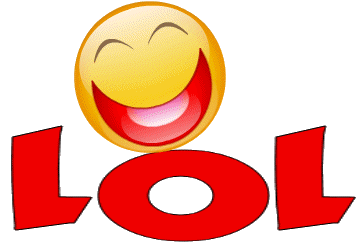 A vibrant yellow smiley face emoji with closed eyes and a wide, open-mouthed laugh sits atop the bold red letters 'LOL'.