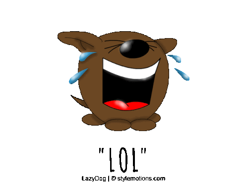 a cartoon dog is laughing with tears coming out of its eyes and the words " lol " underneath it