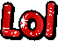 Animated pixel art illustration of the word 'lol' (lots of laughs) in sparkling red letters.