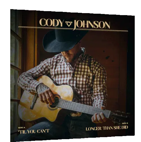 Cody Johnson sings a line from his hit song 'Longer Than She Did', with the text 'They Say' appearing on screen.