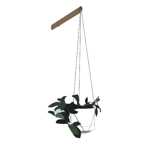 A Loop Living hanging planter with a plant that grows, accompanied by the playful phrase 'it'll grow on you'.