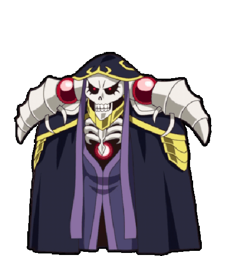 Animated sticker featuring Lord Ainz Ooal Gown from Overlord, showcasing different visual styles of the powerful skeleton sorcerer.